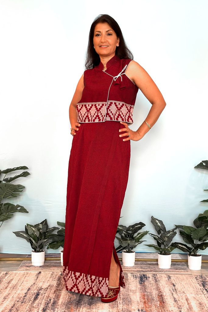 It began with a young woman looking to design an outfit for a pageant. It took her to the alleys of Asan filled with fabrics from around the world. Hand printed cotton from Nepal became her choice of fabric. She sat down and sketched an outline of an outfit.